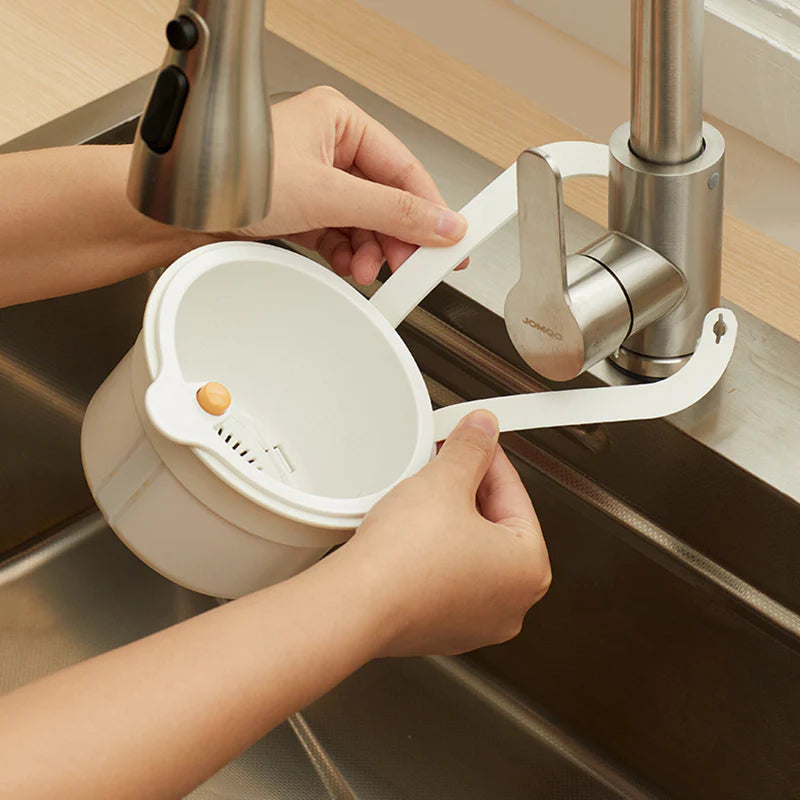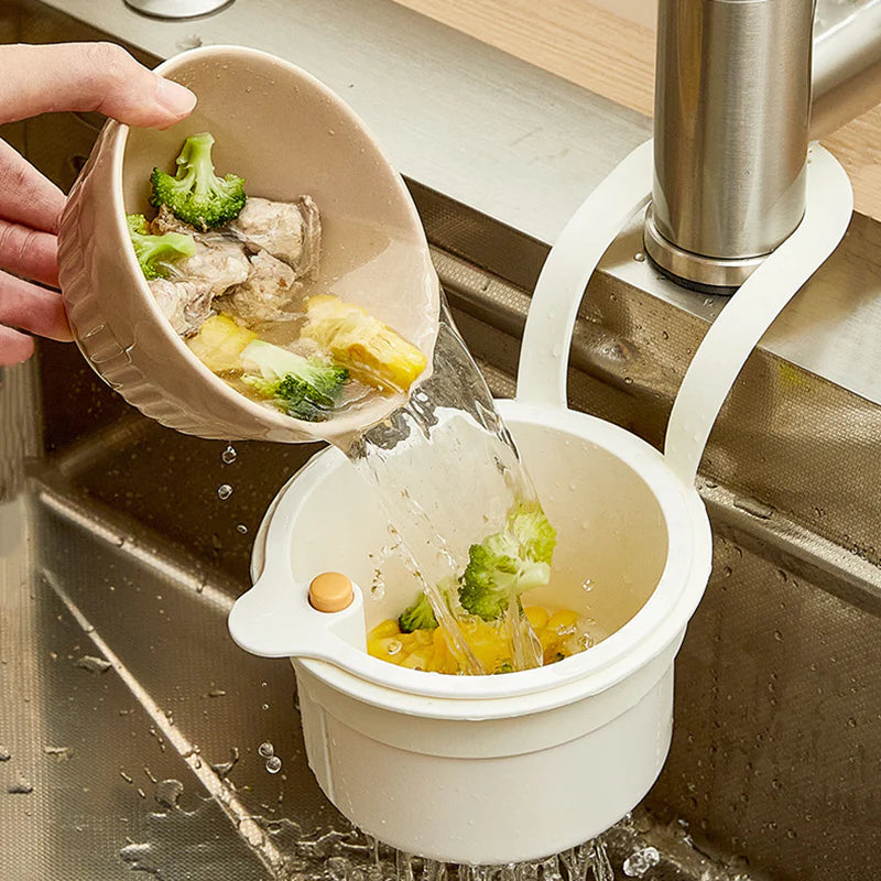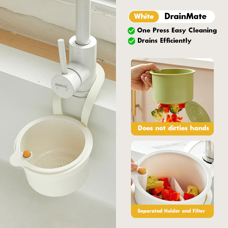 Stanco di raccogliere a mano gli scarti bagnati dal lavello? DrainMate si aggancia facilmente al rubinetto per catturare i rifiuti, filtrare i liquidi e liberarti dagli avanzi senza sporcarti le mani. Con un semplice gesto svuoti tutto direttamente nel cestino, in pochi secondi.